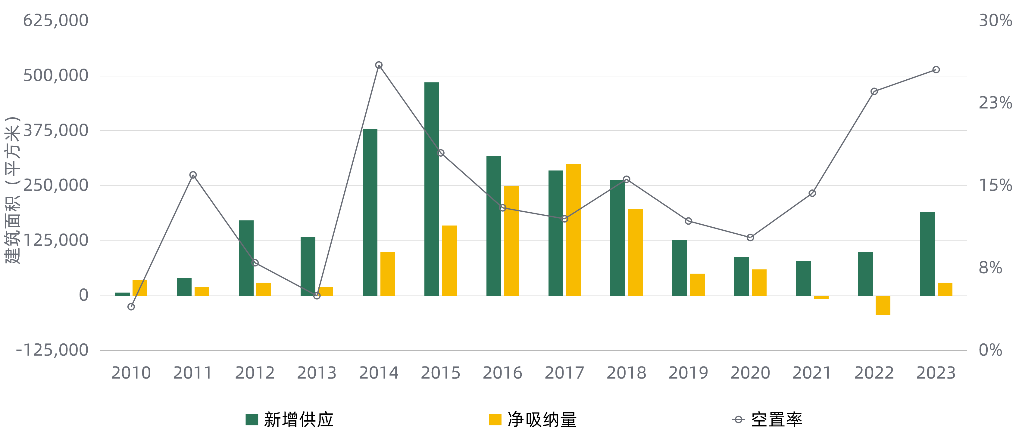 亞奧商圈甲級(jí)(含頂級(jí))寫(xiě)字樓凈吸納量有所回升,但仍舊處于負(fù)值;空置率受部分項(xiàng)目面積釋放影響,繼續(xù)呈上升態(tài)勢(shì)。甲級(jí)(含頂級(jí))及乙級(jí)寫(xiě)字樓成交租金整體均有所降低;本季度該商圈乙級(jí)寫(xiě)字樓去化更為明顯,乙級(jí)空置率有所降低。預(yù)測(cè)下半年將陸續(xù)有新的甲級(jí)寫(xiě)字樓及城市更新項(xiàng)目入市,該商圈整體空置壓力將進(jìn)一步增加,同時(shí)也會(huì)為本商圈及相鄰商圈的租戶(hù)帶來(lái)更多選擇。